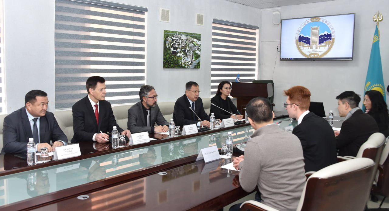 Dr Ben KU, Associate Professor of APSS and Director of China and Global Development Network, and Ms Kan YIP, Assistant Director (Development and Partnership) of China and Global Development Network, visited Al-Farabi Kazakh National University (KazNU), Almaty, Kazakhstan on 21 Feb 2023. The Rector of KazNU, Dr TUIMEBAYEV Zhanseit, received the delegation from PolyU at the Al-Farabi Library together with a group of representatives. They included Dr ABDIRAIYMOVA Gulmira, Head of the Department of Sociology and Social Work; Dr MEIRBAEV Bekzhan, Dean of the School of Philosophy and Political Science; Dr SALNIKOV Vitaly, Dean of the Faculty of Geography and Environmental Management; Dr KUANTAY Nurzhan Deal of the Faculty of Journalism; and a specialist from the university’s International Relations Office. At the meeting, Dr TUIMEBAYEV warmly welcomed the group from Hong Kong, introduced his team, and shared his development goals for his institution. Dr KU responded by introducing PolyU and stating the relevance and significance of international social development. The professors then exchanged views on pursuing international and interdisciplinary collaboration with each other. They expressed eagerness for the two universities to work together through the establishment of the joint center at KazNU.