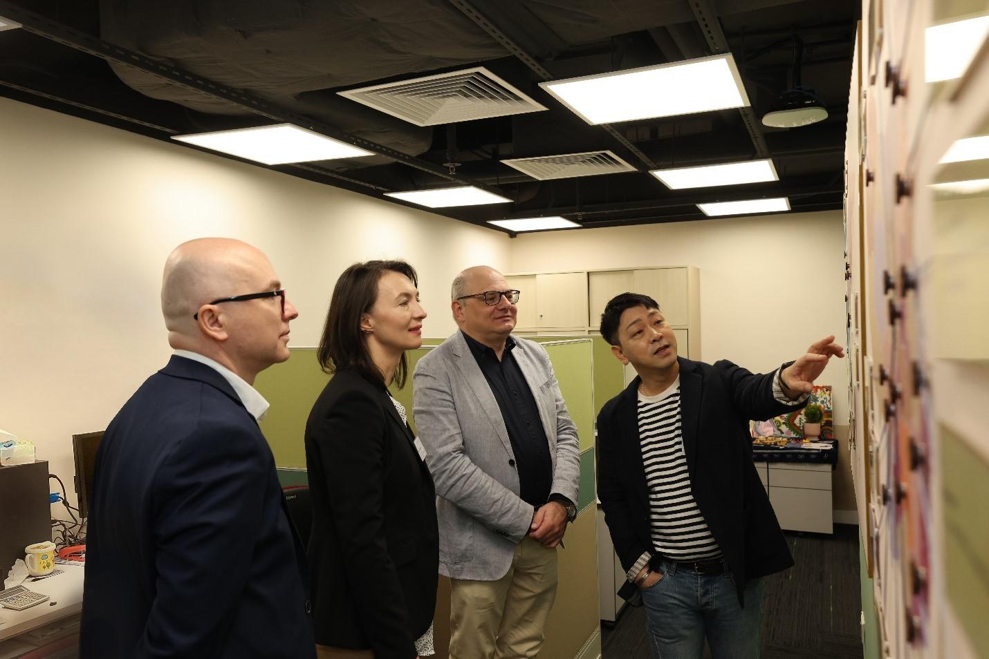 China and Global Development Network (Network) of the Department of Applied Social Sciences (APSS) received a delegation from the University of Warsaw (UW), Poland on 9 March 2023. The delegates are Prof. Daniel Przastek, Dean of the Faculty of Political Science and International Studies, together with Dr Maria Theiss and Dr Bartosz Pieliński, Assistant Professors of the Faculty of Political Science and International Studies at UW. Dr Ben Ku, Director of CGDN, and Ms Kan Yip, the Assistant Director (Development and Partnership) of CGDN welcomed the group and led them around the Network. Telling the stories behind artefacts displayed in the Network, they introduced the Network’s many projects around the world.